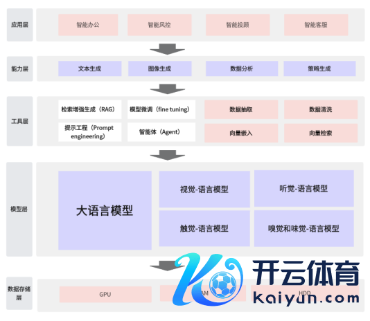 (1)基础设施层:包括GPU、CPU、RAM、HDD、Network等硬件资源,为大模子的造就与分析提供必要的运算资源和存储智商。