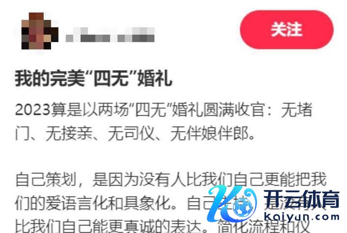 它提议将检朴进行到底,传统婚典上的车队、伴郎伴娘当今被无形的翰墨和简便的签字取代。