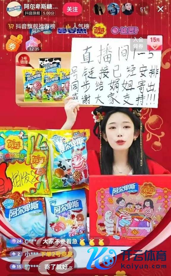 阿尔卑斯糖也趁势在 直播间和肥娟进行片面的互动。