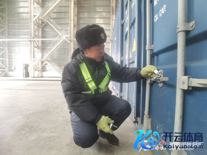 1月20日,谭磊正在阿拉山口站集装箱换装库搜检集装箱上的封印。石榴云/新疆日报记者 白素君 摄